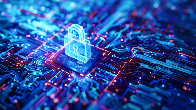 Glowing AI chipset processor and circuits. Futuristic artificial intelligence CPU with motherboard. Digital technology illustration concepts