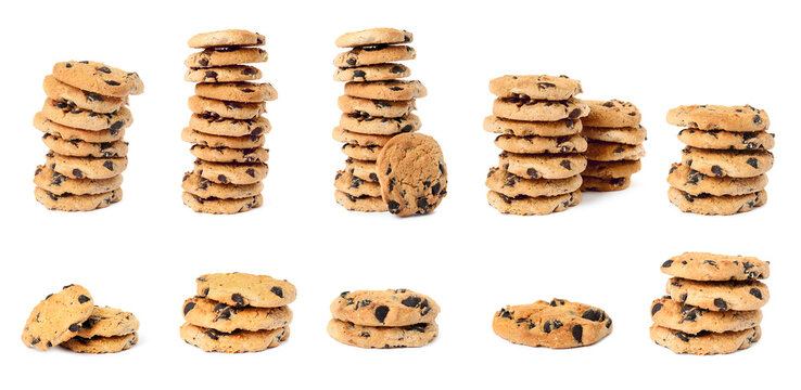 stack of cookies , middle cream cookies stack isolated on transparent background