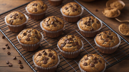 Delicious chocolate chip muffins inducing sweet joy
