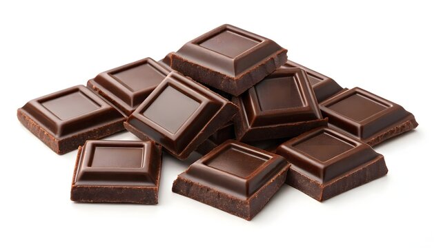 Pieces of black, white and milk chocolate isolated on white background. Vector cartoon flat illustration, icon.