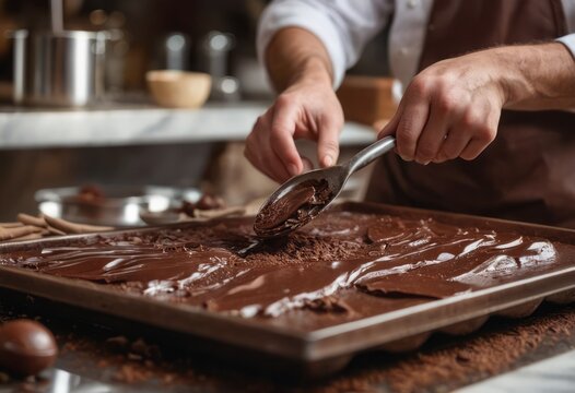 Art of Chocolate: Backview of a Chocolatier Crafting Delicious Treats