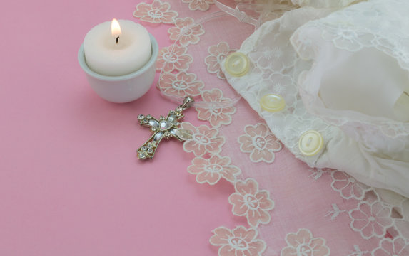 christening cross watercolor art and candles and leaf  on white background, Can be used for banners, backgrounds, badge, icon, church posters, brochures, print and health care awareness campaign