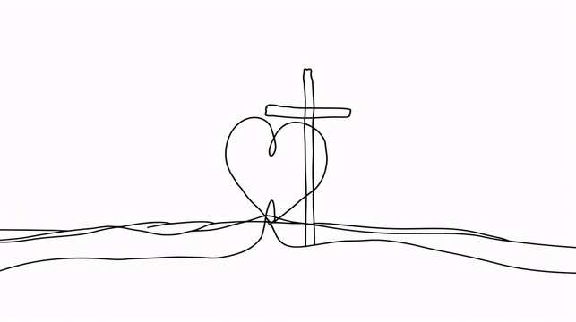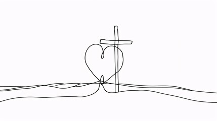 Faith embraces. Core and crucifix. Unbroken sketch. Spiritual idea. Visual.
