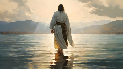 Jesus Christ Walking on Water - Biblical Illustration - Generative AI