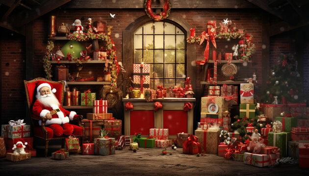 christmas shop with santa claus and presents