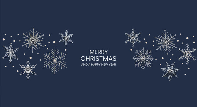 Elegant Christmas and New Year Snowflake Banner in Navy and Gold