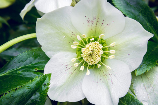Blossom of Helleborus - Christmas Rose in early Spring, close-up, macro