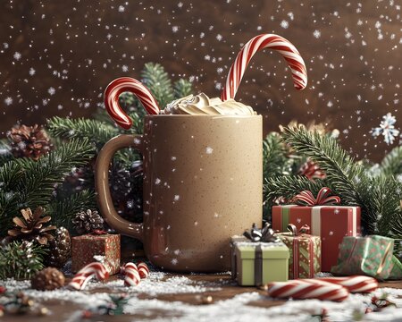 Cozy Holiday Mug of Creamy Chocolate with Festive Trimmings