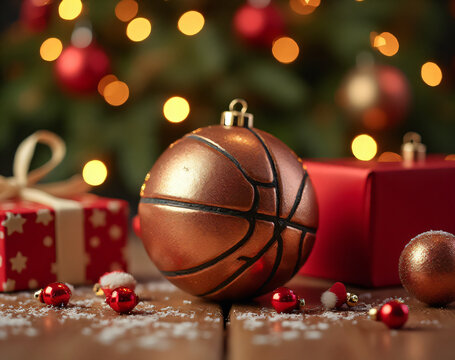 A cheerful Christmas setting showcases a sporty twist on holiday cheer, complete with a shiny ball and festive decorations galore._00001_