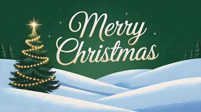 Dreamy Merry Christmas 2025 winter landscape card with snowy mountain backdrop