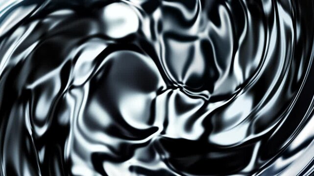 Abstract swirling luxury chrome silver metallic iron liquid motion waves video metal background, 4K UHD