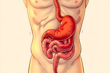 Medical illustration highlighting the inflammation caused by ulcerative colitis in the colon.
