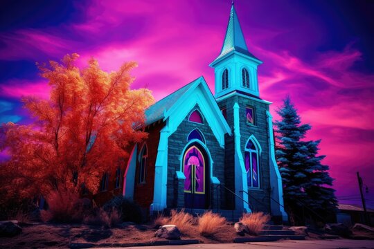 a exterior view of church with colors vivids