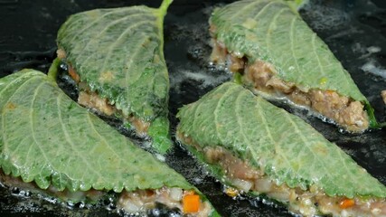 Korean food : Kkaennipjeon(Pan-fried battered perilla leaves). Korean ritual food usually eaten on holidays.