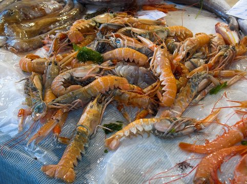pesce fresco appena pescato al mercato del pesce cicala di mare