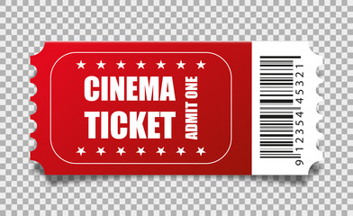 Vector red cinema ticket isolated on transparent background.