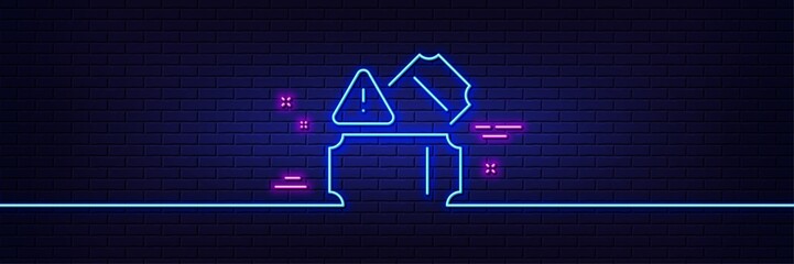 Neon light glow effect. Tickets line icon. Transport entrance sign. Paid admission ticket symbol. 3d line neon glow icon. Brick wall banner. Tickets outline. Vector