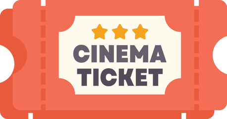 Red cinema ticket granting access to a movie premiere, featuring a five star rating, suggesting an exceptional cinematic experience