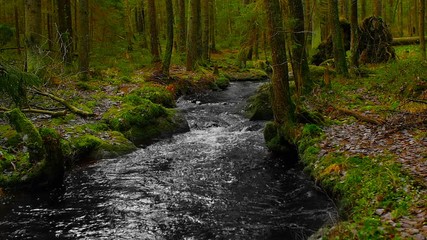 picturesque forest landscape with river, cinemagraph video,  slow motion