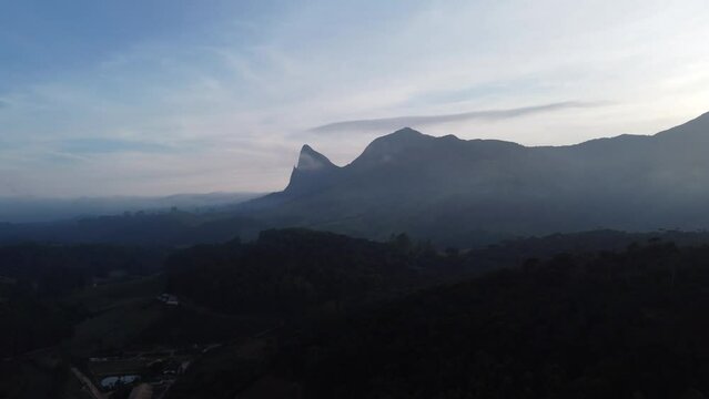 incredible mountain with blue hue in the interior of Brazil in aerial cinematographic footage with drone - Pedra Azul, Espirito Santo, Brazil