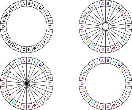 Circles of the alphabet. Cipher wheel template vector illustration.