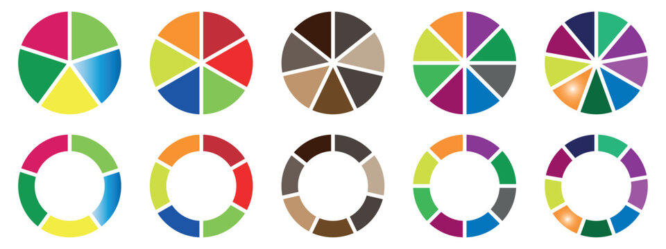 Collection of pie chart circle icons set, Colorful diagram collection. Modern Pie Chart Infographic Design Elements.