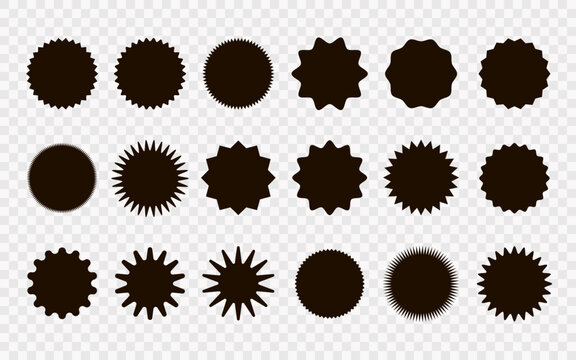 Zigzag edge round shapes collection. Jagged sticker or stamp set with wavy edges