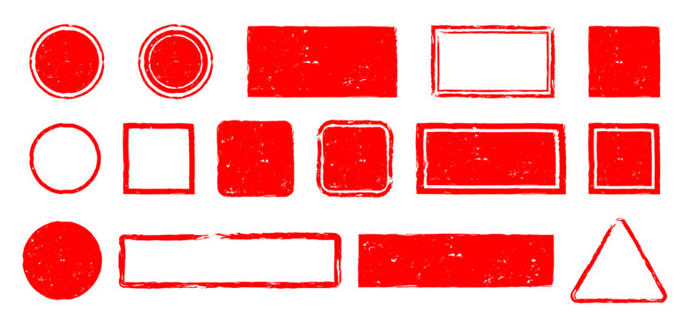 Red stamp frame. Vector illustration of grunge square and rectangular border. Round Japanese sun in vintage style.