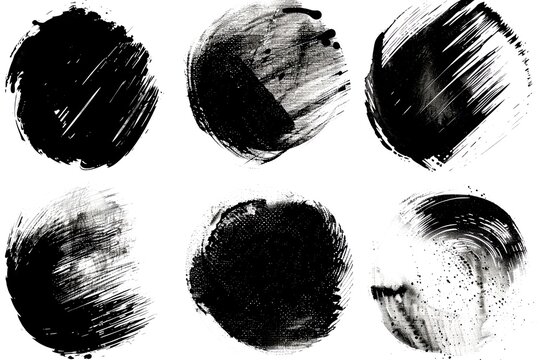 Grunge circles set. Grunge round shapes. Banner circle frames for text. Black paint stains. Vector illustration.