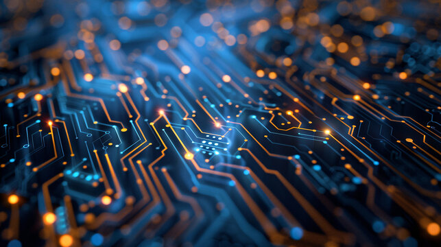 Glowing Circuit Board Technology Background. Futuristic glowing circuit board, perfect for technology, innovation, and digital themes.