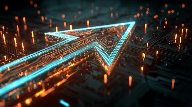 Futuristic blue digital circuit board design with central blank space, ideal for themes like AI, tech innovation, or crypto branding