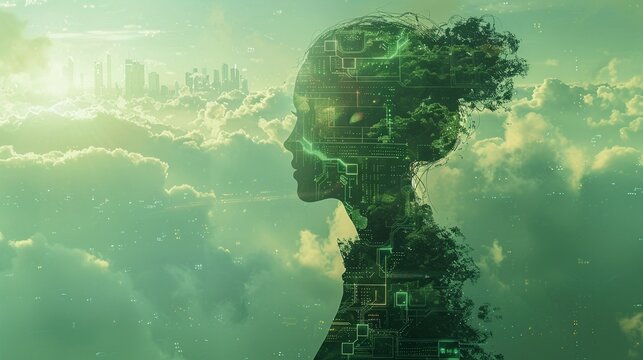 A blue business or technology background styled like circuitry, with flat elements symbolizing human connections. Circuit patterns intertwine, reflecting communication and networking