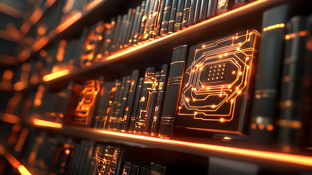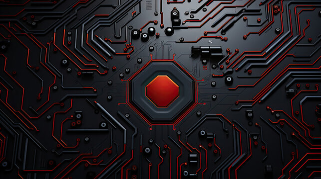 Futuristic neon gift box glows with tech circuit patterns on a black background, symbolizing high-tech shopping, innovation, and modern holiday sales like Cyber Monday and Black Friday.