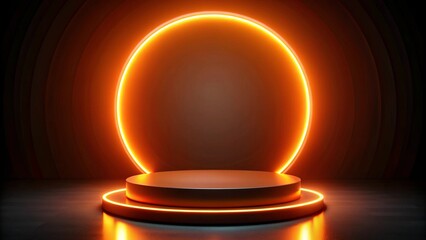 A futuristic, illuminated circular platform bathed in vibrant neon colors, with a dreamy, smoky backdrop.