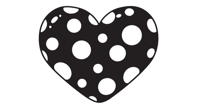 Polka Dot Black Heart Graphic with White Spots in Minimal Monochrome Style.
