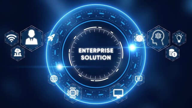 Glowing neon bank building icon within circular digital interface elements on black background