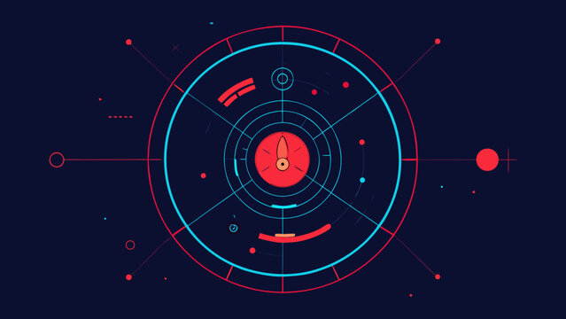 Futuristic circular big data visualization on a dark blue background. Abstract digital technology design with geometric shapes and glowing elements. Vector illustration.