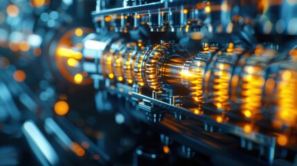 Detailed close-up of a running car engine with oil circulating through the system, highlighting the mechanical precision and engineering, rendered in a film-like texture