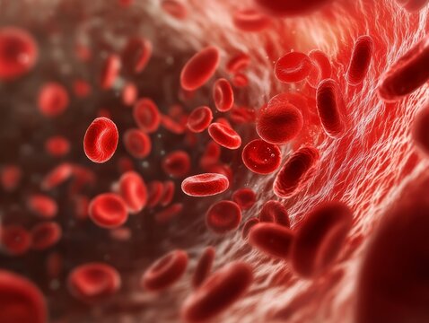 Microscopic view of red blood cells in circulation