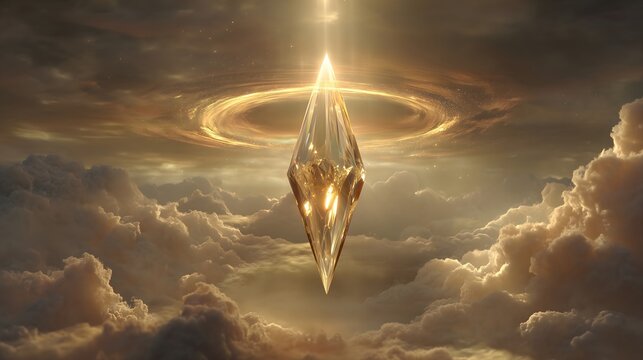 Descending golden crystal surrounded by radiant celestial halo