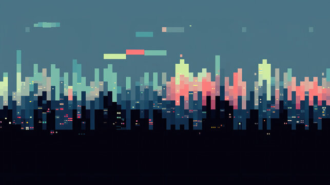 a cool modern pixel inspired city wallpaper design, retro art, ai generated image