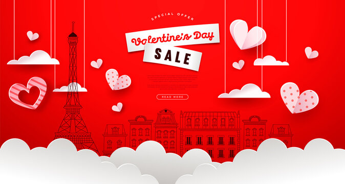 Valentine's Day sale paper cut paris city template