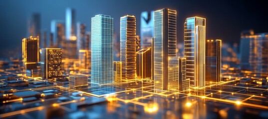 Abstract Smart City Skyline, Illuminated by Futuristic Technology and Data Connections