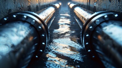 Close up view of underground pipes within a modern residential city s water and sewage system