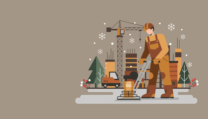 Snowplow clears sidewalk in downtown area after heavy snowfall during winter season, Snowplow clearning downtown sidewalk of snow in a large city
