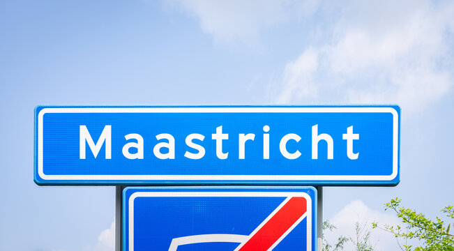 Place name sign of the city of Maastricht, province of Limburg, in the extreme south of the Netherlands.
