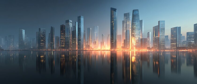 Tranquil cityscape at dusk: elegant urban living ambience