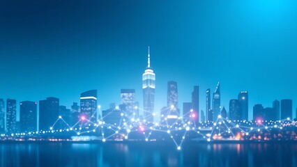 Cityscape with geometric overlay showcasing innovation and growth