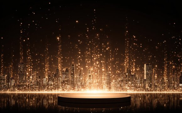 Mesmerizing cityscape glows in abstract light backdrop