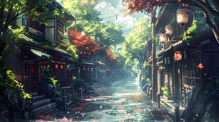 Urban cityscape at dusk with tranquil aesthetic for modern living